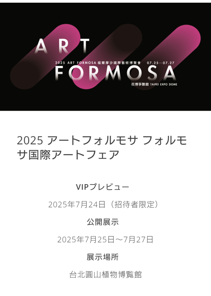 台湾で7月25日~27日に開催されるART FORMOSA 2025に北井画廊から出展します。(24日はVIPプレビュー)
